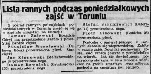 Ustawa dekomunizująca ulice z 1 kwietnia 2016 r., z którą się nie zgadzamy, jest jednak prawem. Zaproponowaliśmy więc, by ulica ta nosiła imię Julka Nowickiego. Młodego, dwudziestoczteroletniego chłopaka, który tragicznie zginął od policyjnej kuli, podczas demonstracji bezrobotnych. Naszym zdaniem postać Nowickiego symbolizuje wydarzenia, które rozegrały się na toruńskich ulicach w 1936 roku, zasługuje na pamięć przyszłych pokoleń. Sojusz Lewicy Demokratycznej nadal będzie zabiegał, by godnie upamiętnić Jego cześć.
